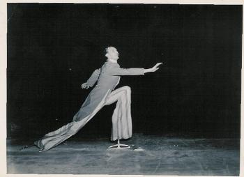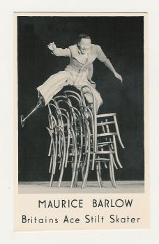 Dolphin image courtesy of Cardigan Bay Marine Wildlife Centre http://www.cbmwc.org.uk ![]() According to research, 97% of adults in Western culture lose their natural poise and so it is rare to meet one of the 3%! Elsie was in her eighties at the time of the photograph. She had never had a day's illness in her life; she still danced, sang, played the piano and was a bundle of fun. She had never heard of the Alexander Technique, so somehow without any help, she had managed to maintain a natural and very fluid grace and poise throughout her life. A delightful lady. Maurice Barlow - Ace Stilt SkaterGail's father, Maurice, was an international professional stilt-skater, whose act in these pictures involved first of all skating round the ice balancing a huge top hat on his head and singing without a microphone and then building up speed (minus the hat) to leap over ever-higher stacks of chairs, finishing with splitting an apple on the head of a hapless 'volunteer' from the audience who would be asked to sit on the top row of chairs. To achieve this required of course a huge amount of athletic skill coupled with vast quantities of balance and poise! ![]() This is an extreme example of poise. Most of us would be happy to be able to do the things we want to do in our life without pain or restriction and to regain some sense of that lightness, ease and mobility with which we were born.
